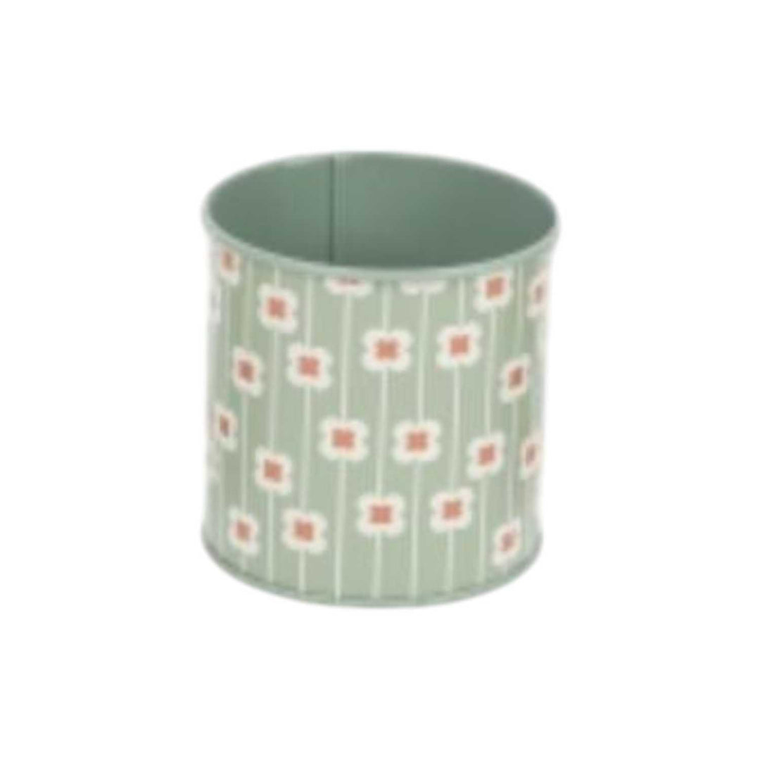 Balde Decorativo De Metal Verde Pastel Floral 8.5x8cm