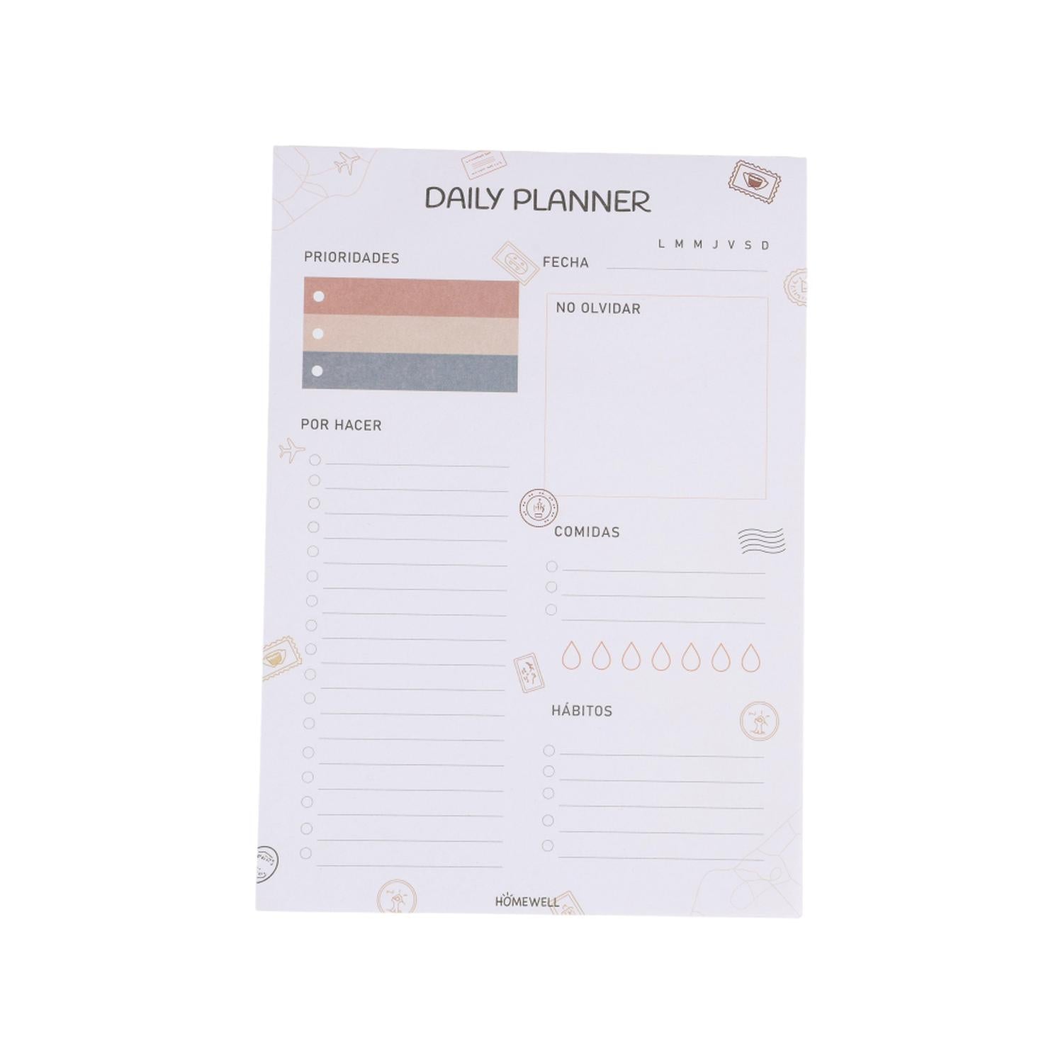 Optimiza tu productividad y mantén tus metas a la vista con el Planificador Diario de Homewell. Esta herramienta esencial de escritorio está diseñada para quienes necesitan una estructura clara para su jornada, permitiendo registrar desde prioridades urgentes hasta hábitos saludables en un formato visualmente relajante y organizado.
