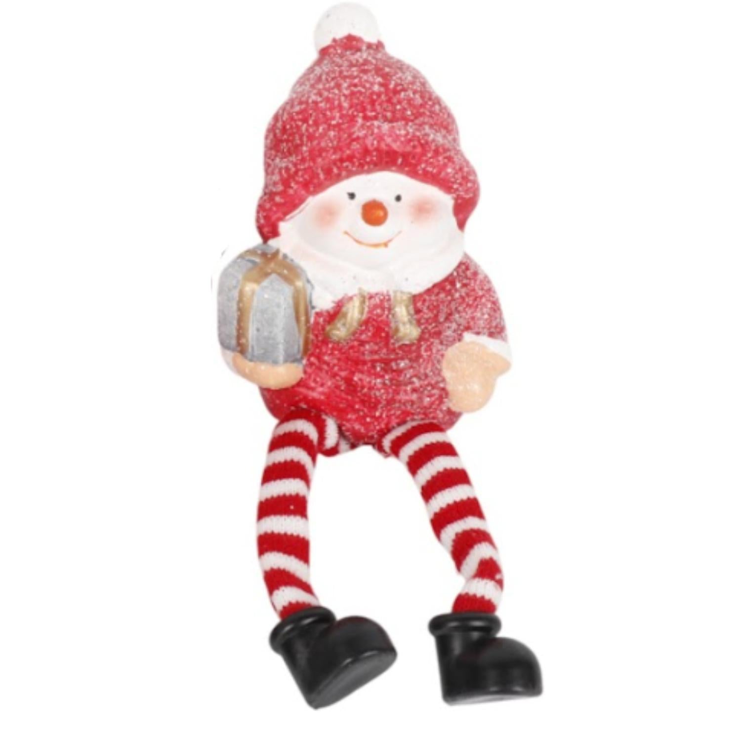 Dale un toque divertido y hogareño a tu decoración festiva con estos adorables muñecos navideños. Diseñados para sentarse cómodamente en bordes, estantes, repisas o la chimenea, sus piernas de tela a rayas rojas y blancas cuelgan con un efecto encantador. ¡Trae a casa la magia de la Navidad con estos divertidos acompañantes!