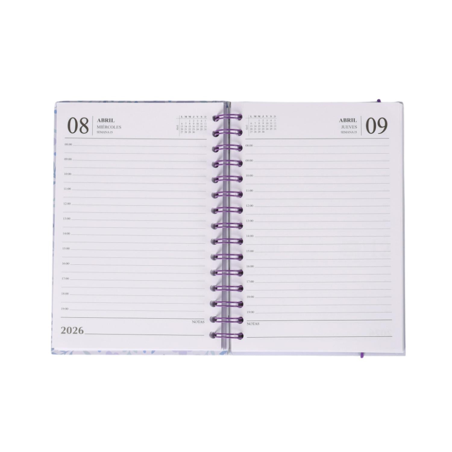 Una herramienta esencial para la organización del próximo año, esta agenda 2026 combina funcionalidad con diseños muy variados y atractivos. Su construcción presenta una tapa dura para mayor durabilidad y una encuadernación en espiral que facilita la apertura completa. La selección de cubiertas incluye una amplia gama de hermosos patrones estampados.