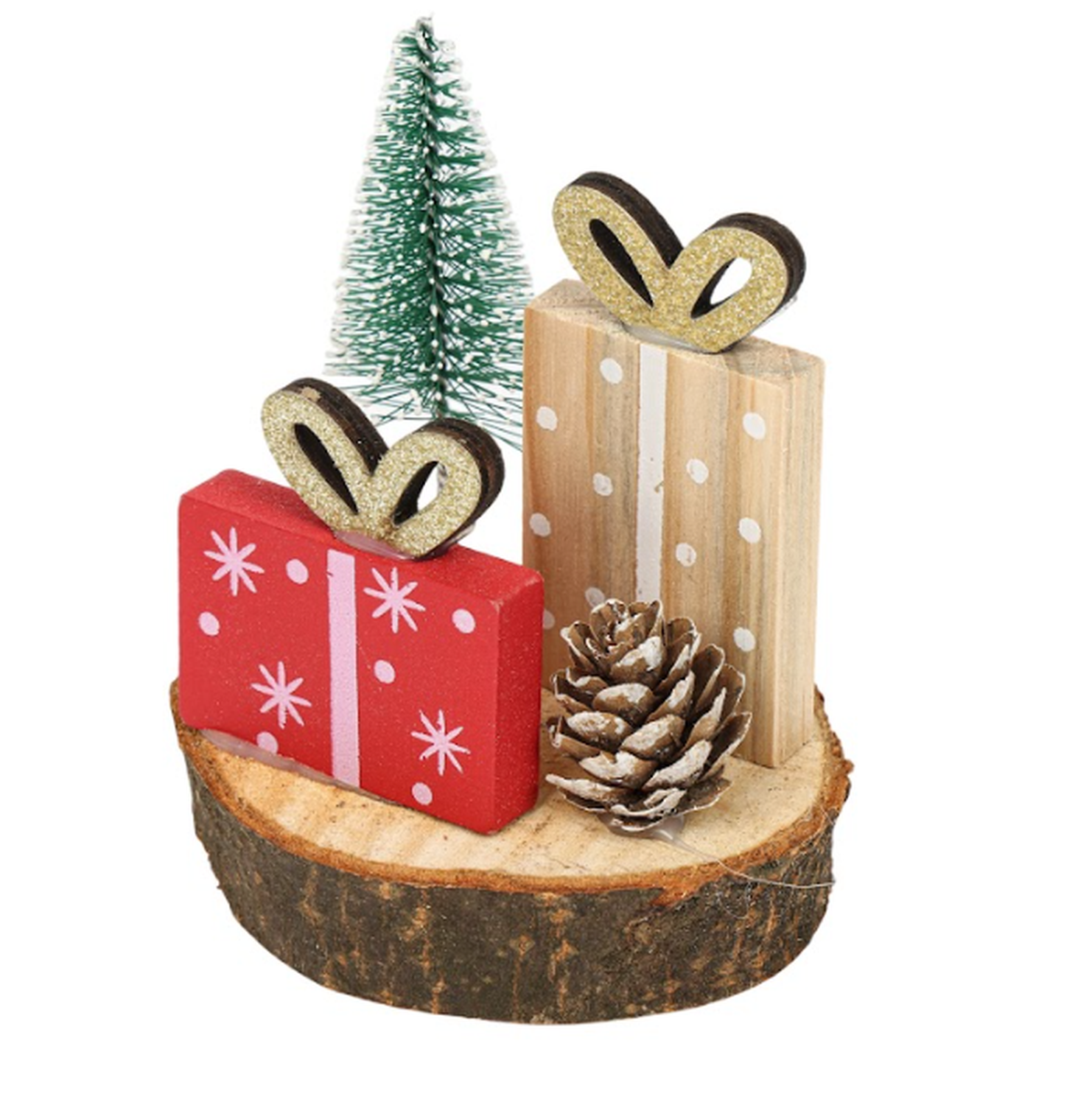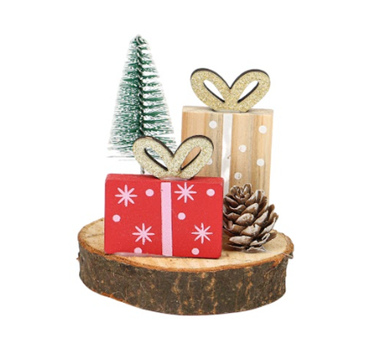Este adorno de mesa captura el espíritu festivo con un toque rústico y natural. La base de la decoración le confiere un encanto rústico. Es una pieza perfecta para decorar escritorios, repisas, mesas auxiliares o para usar como un pequeño centro de mesa individual durante la temporada navideña.